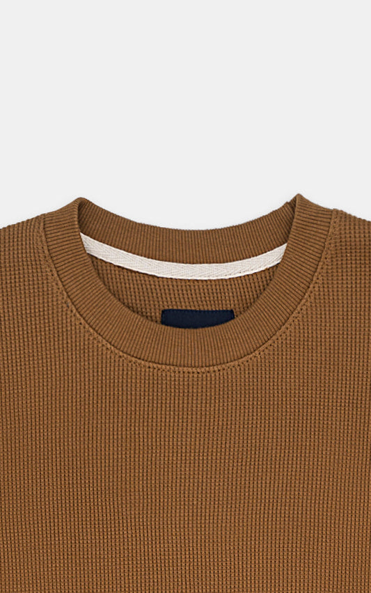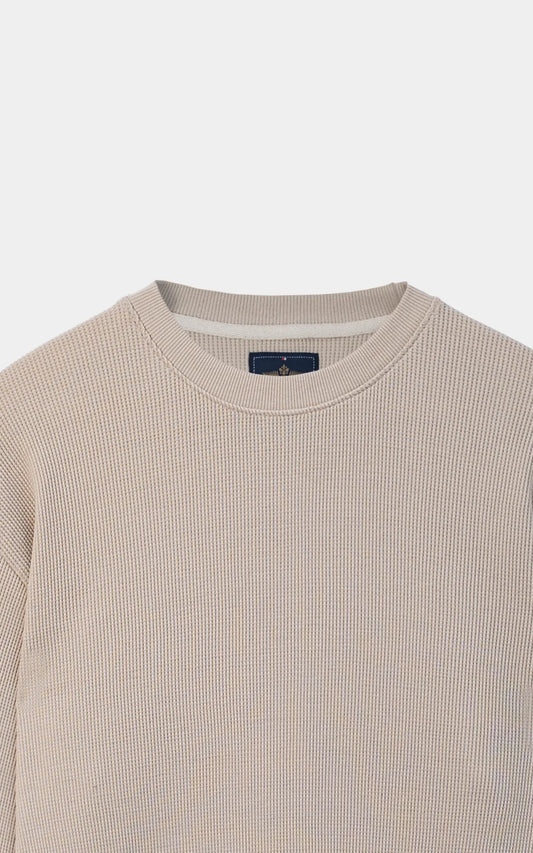 WAFFLE KNIT CREW NECK SWEATSHIRT BEIGE