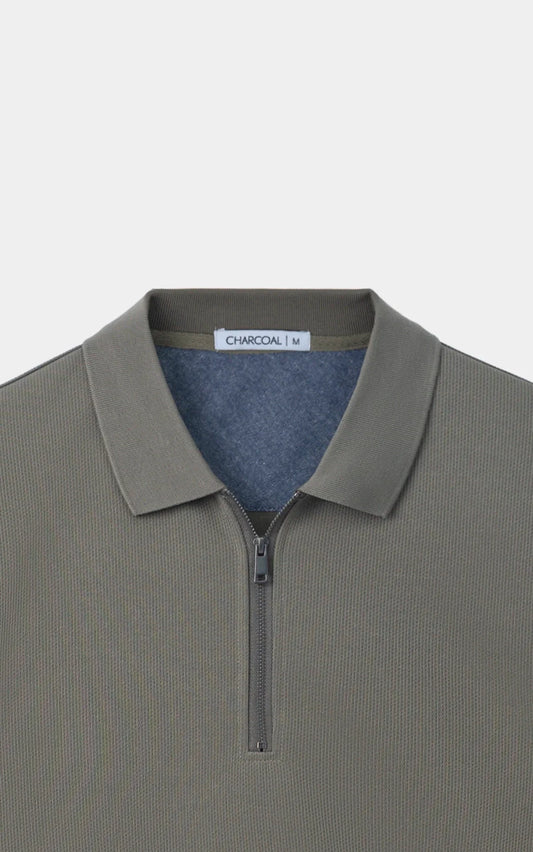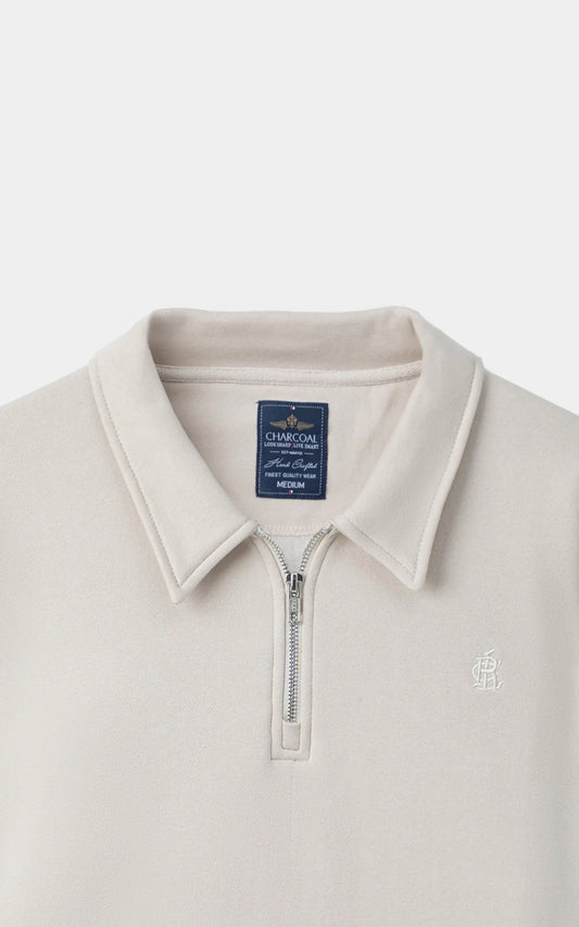 COTTON POLY BLENDED HALF ZIP SWEAT SHIRT BEIGE