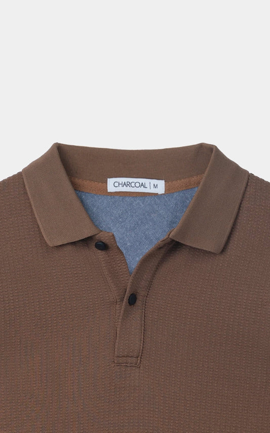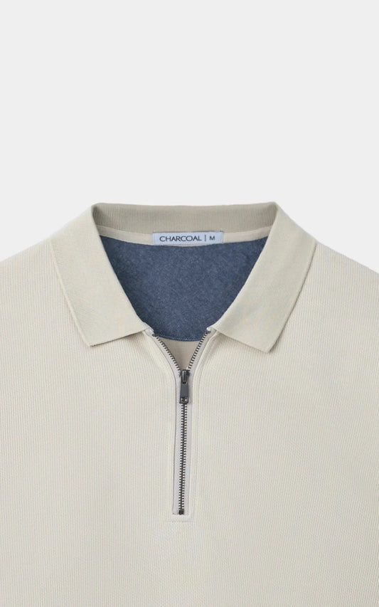 Sold outKNITTED TEXTURED POLO SHIRT BEIGE