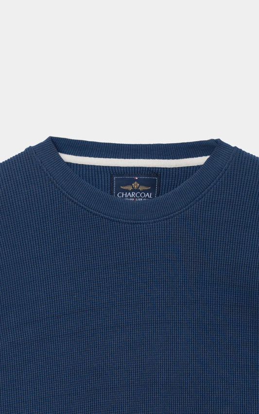 WAFFLE KNIT CREW NECK SWEATSHIRT BLUE