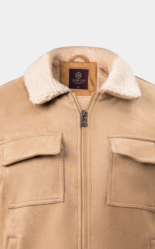 SMART FIT FULLSLEEVE FUR COLLAR SUEDE JACKET KHAKI